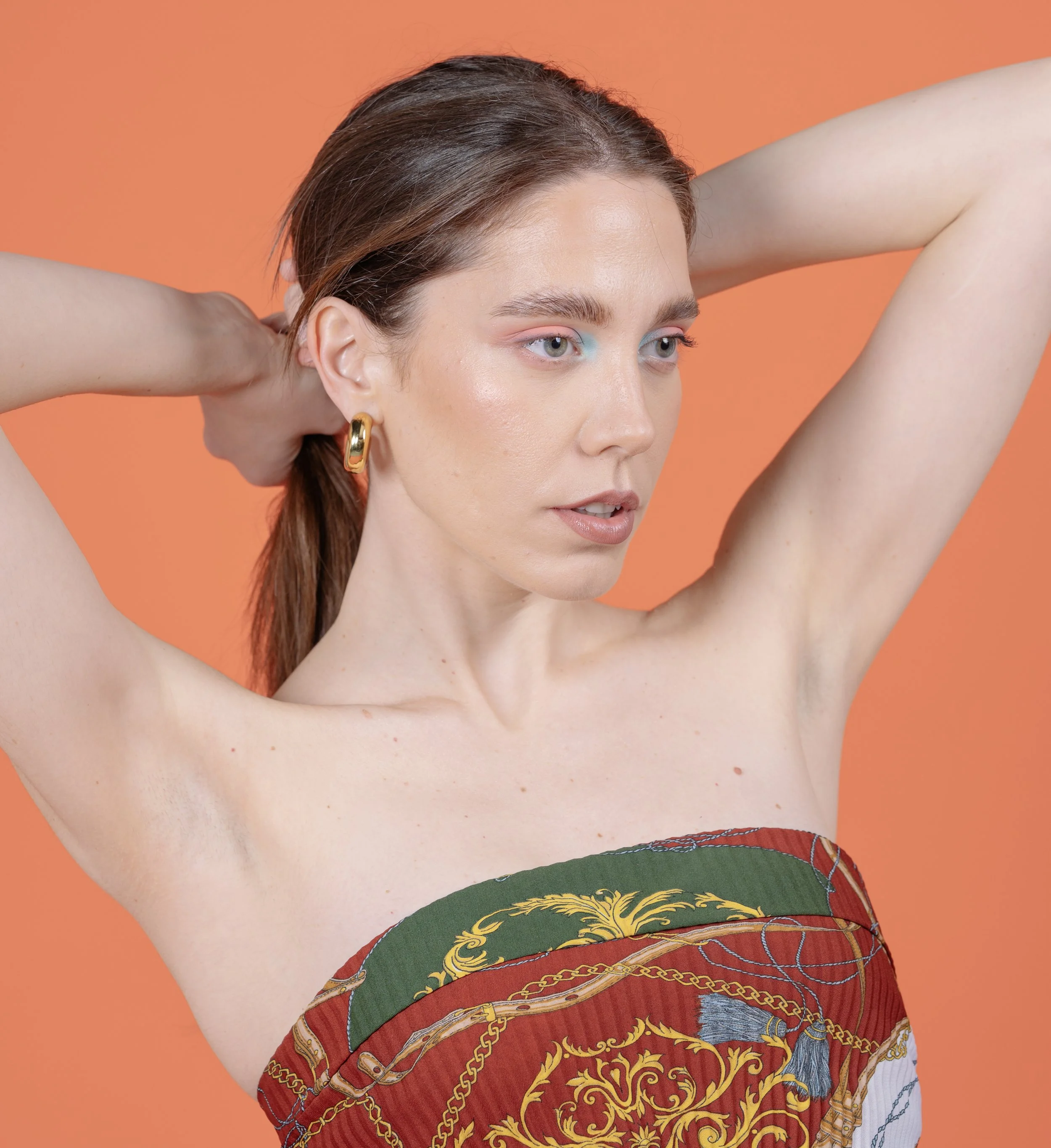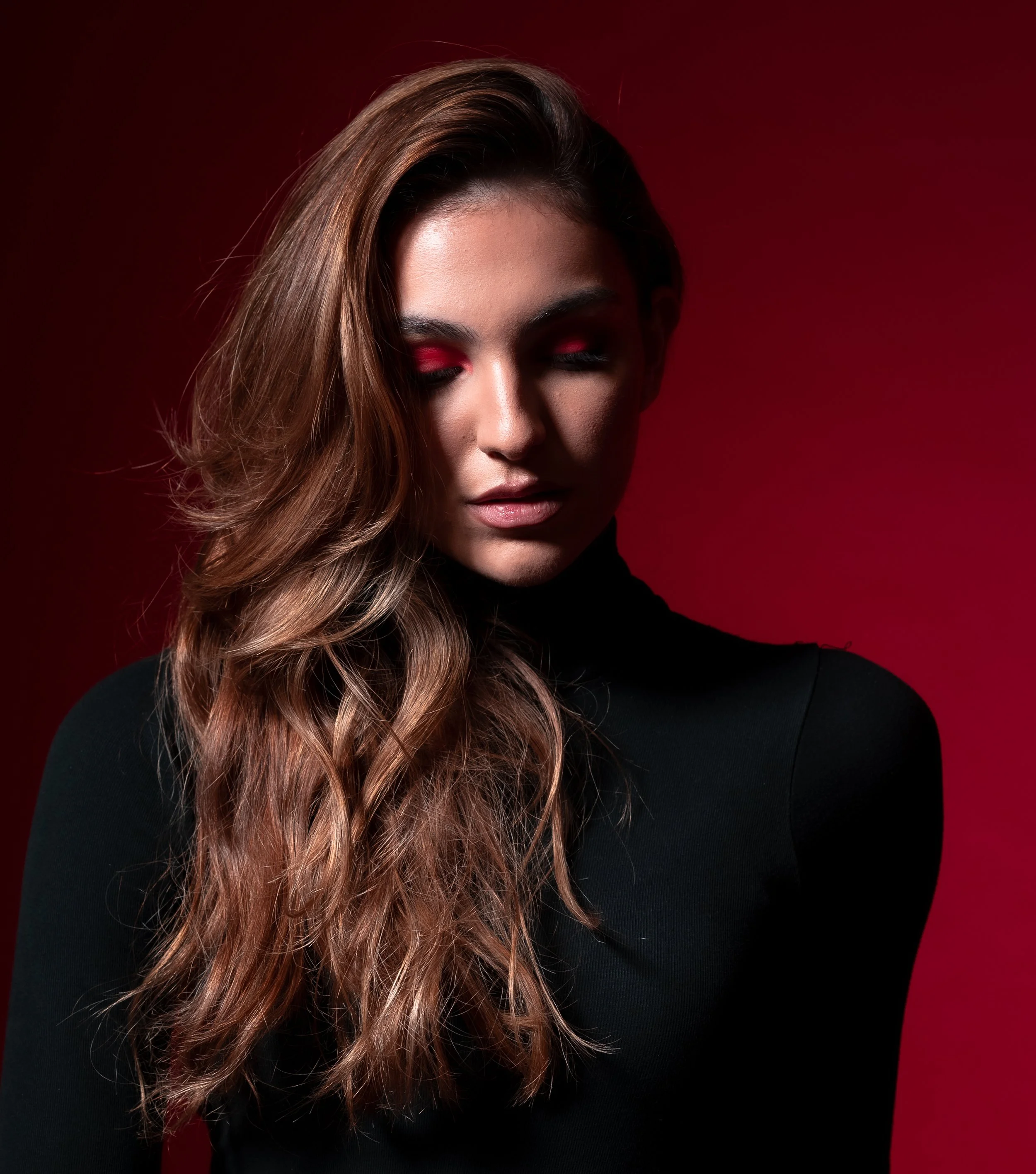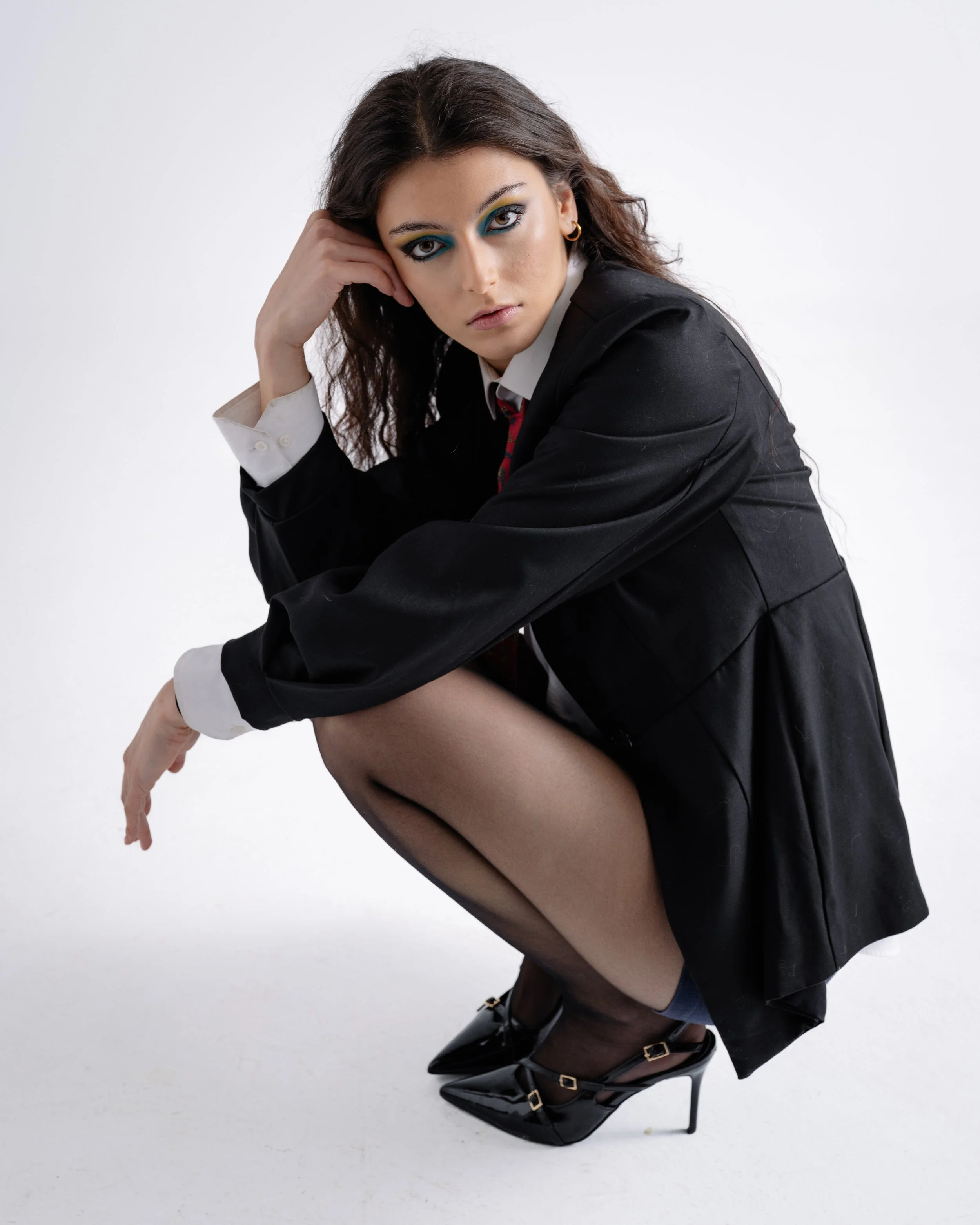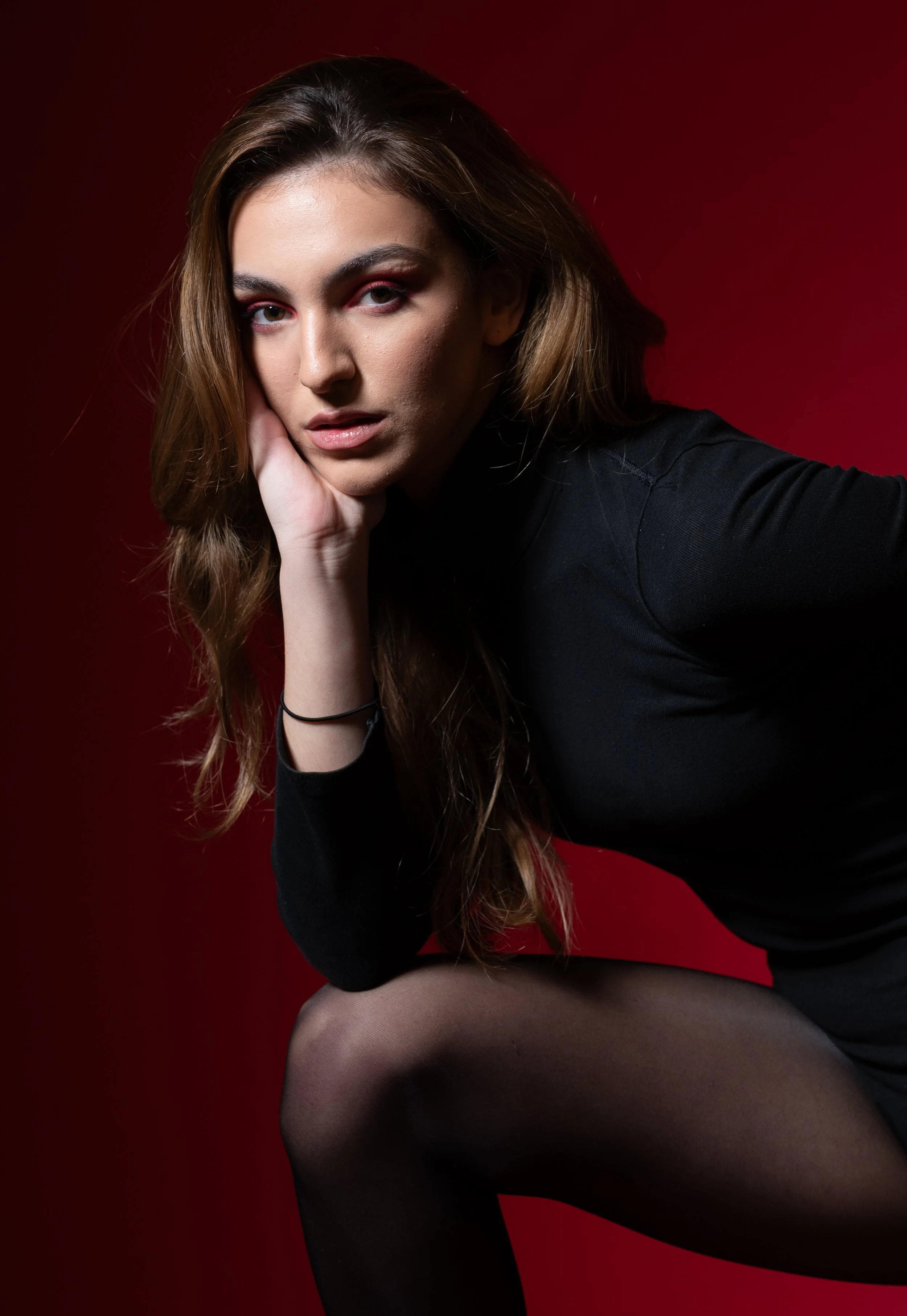 She doesn’t simply stand before the lens, she defines the moment. Follow the light that rests on her.